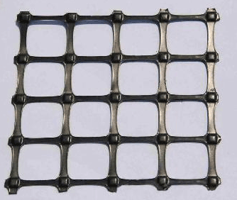經過拉伸形成的具有方形或矩形的聚合物網材,按其制造時拉伸方向的不同可為單向拉伸和雙向拉伸兩種。它是在經擠壓制出的聚合物板材(原料多為聚丙烯或高密度聚乙烯)上沖孔,然后在加熱條件下施行定向拉伸。單向拉伸格柵只沿板材長度方向拉伸制成;雙向拉伸格柵則是繼續將單向拉伸的格柵再在與其長度垂直的方向拉伸制成。
