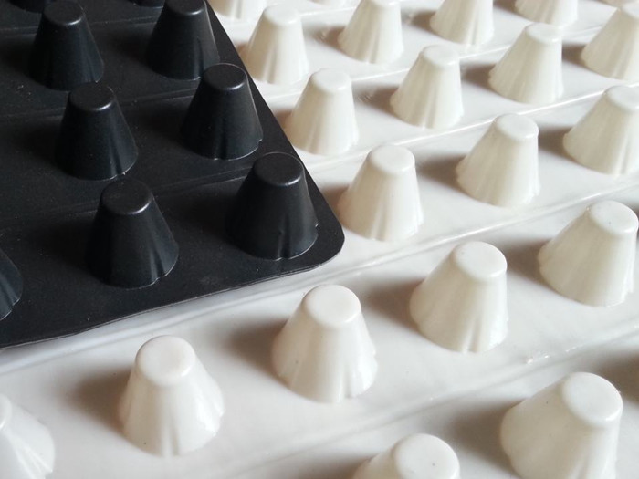 防排水保護板可以地保護構筑物和防水層,并且抵抗土壤中的各類酸堿和植物的根刺。在地下室外墻回填土時,它可以保護建筑物和防水層免遭破壞。